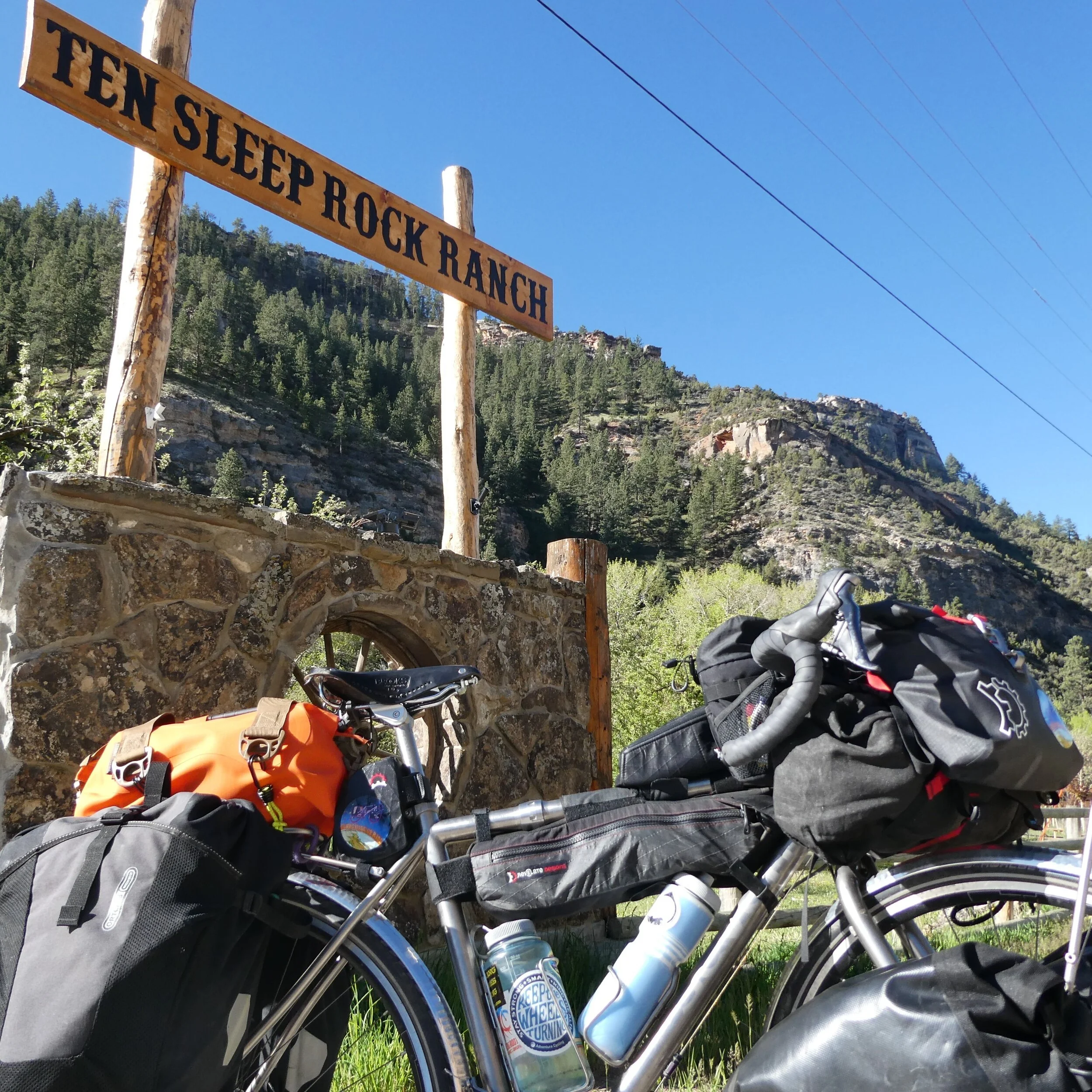 It was difficult to leave Ten Sleep Rock Ranch this morning. I dawdled doing yoga on the deck at dawn, rocking some flying Warrior IIIs next to my friend, Ten Sleep Creek. Rock climbers and touring cyclists mix well and I met some really good people there last night and this morning. Lots of climbing and wilderness adventure professionals getting in pre-guiding season climbing on some outrageous rocks in the Canyon. The Rock Ranch sits at the base of one of the all-time most awesome climbs in the world, which means that I'll be back to base here and explore the Bighorn Mountains again in the next years.